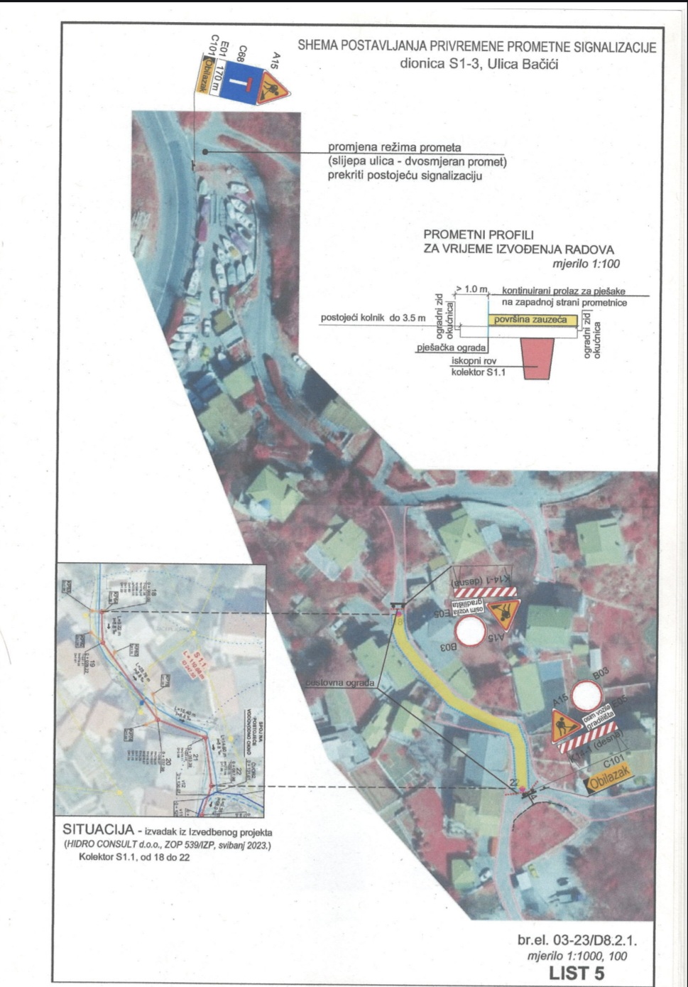 • Dionica II – Ulica Bačići (u sklopu zahvata od kućnog broja 8 do kućnog broja 15)